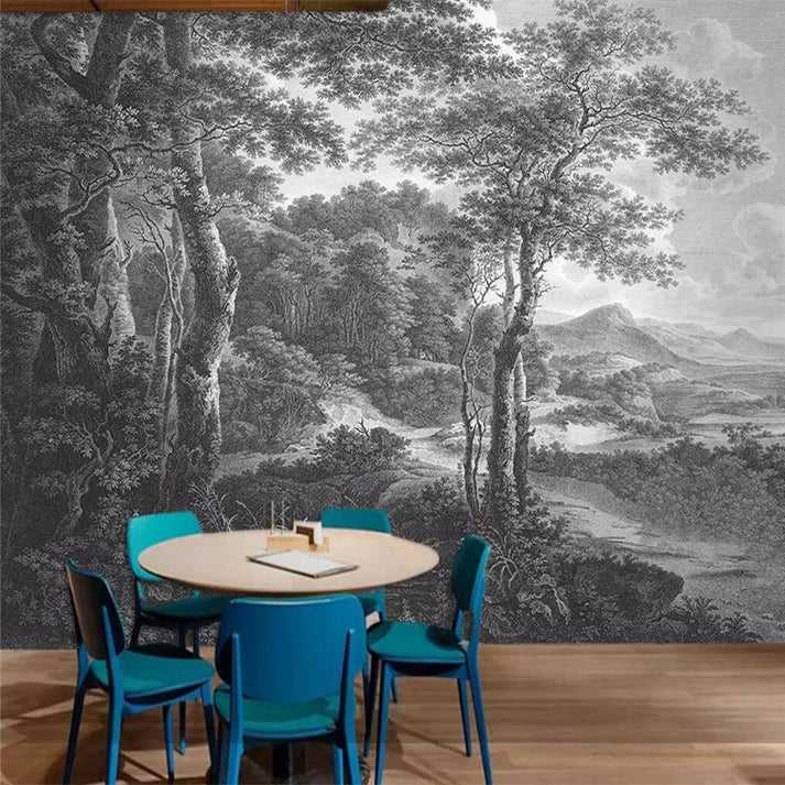 Tranh Dán Tường Chủ Đề Rừng Đen Trắng Tối Giản